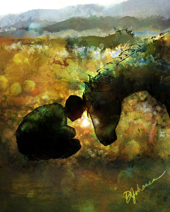 look at, but resonate with me on a much deeper level. This picture is my absolute favorite. Donna created this picture after many discussions we had about a new business I was starting called ”Meditate with Horses”. The first time I laid eyes on it my whole body started to vibrate and I knew I had connected through this picture to something much bigger than I had ever experienced before.